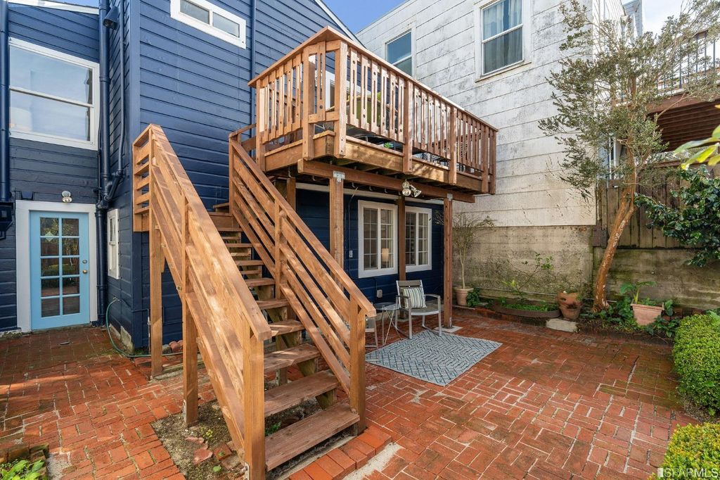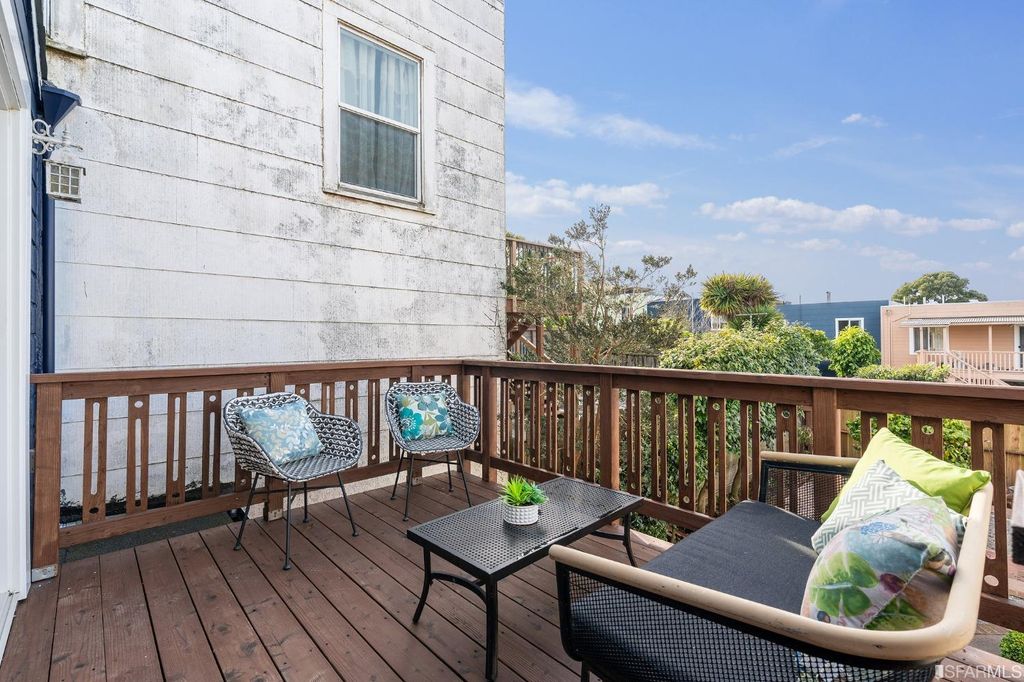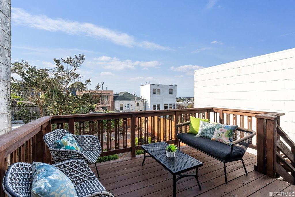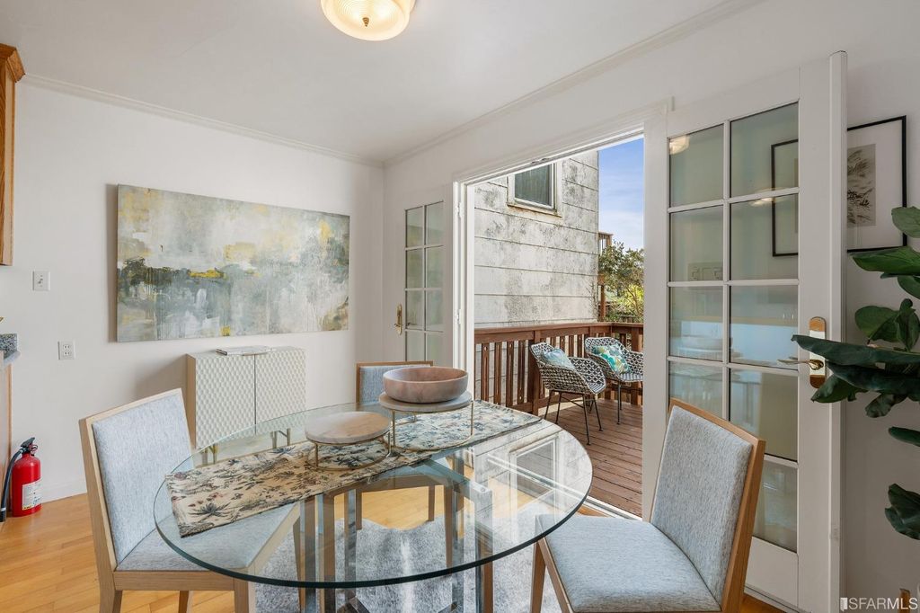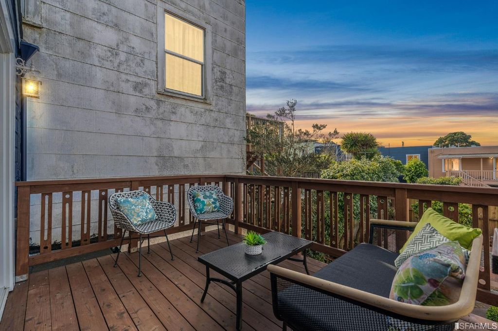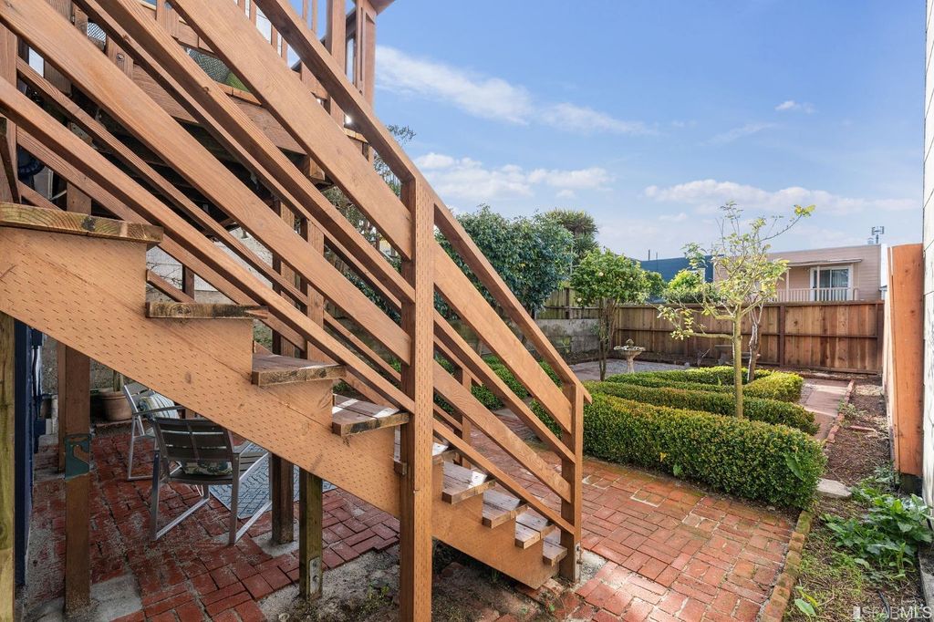 Sweet and well maintained jewelbox in a prime location of Merced Heights! This charming piece of San Francisco is a beautiful little home and would be a special one to own. Gated entry leads into a small mud area which flows into the living room with wood floors, woodburning fireplace and built in cabinet. Left through the hallway is the front, smaller bedroom with large closet. Off the hallway to the right is a well laid out and updated kitchen. Granite counter tops, oak cabinets, under cabinet lighting and stainless steel appliances are just a few of the niceties coming with this home. Off the kitchen is the larger 2nd bedroom with access to the upstairs bathroom. This sweet bath can be accessed from the bedroom or from the kitchen dining area. French doors off the dining area open to a nice redwood deck which leads to the large and well manicured yard. There is a bonus 2nd bath and 3rd room with views of the brick patio and yard. 2/1 up and 1/1 down. Laundry in oversized garage. Large yard! This home has multiple expansion potential options!