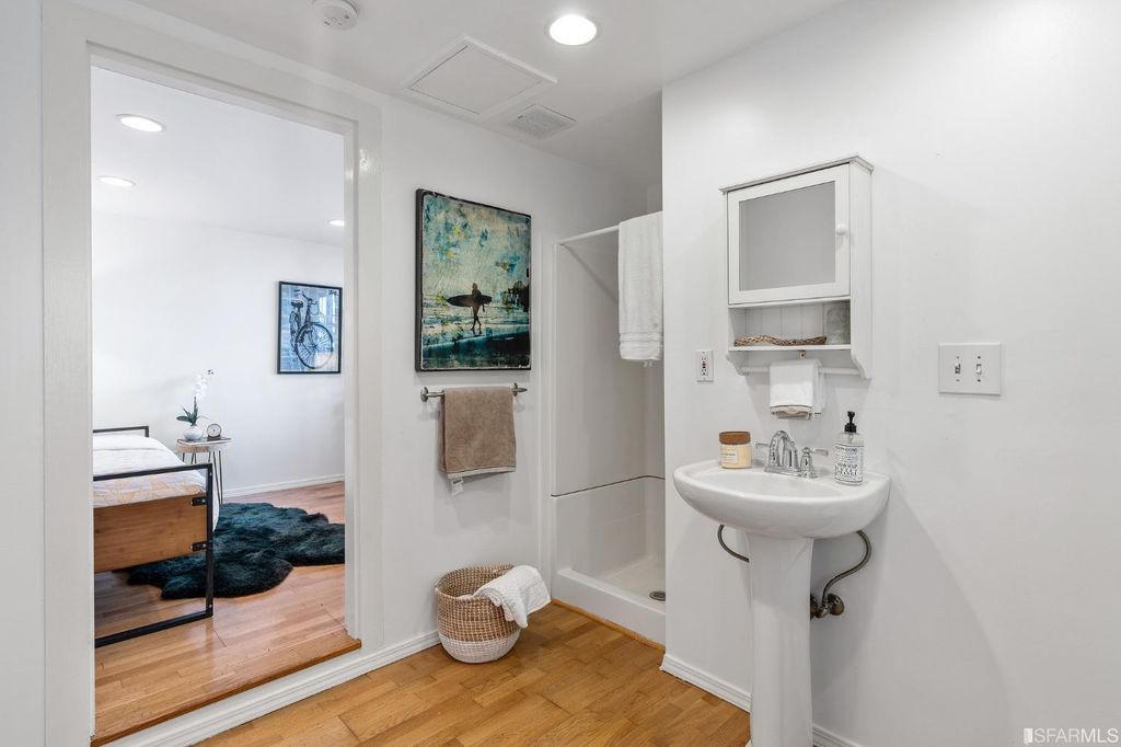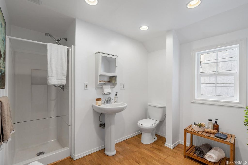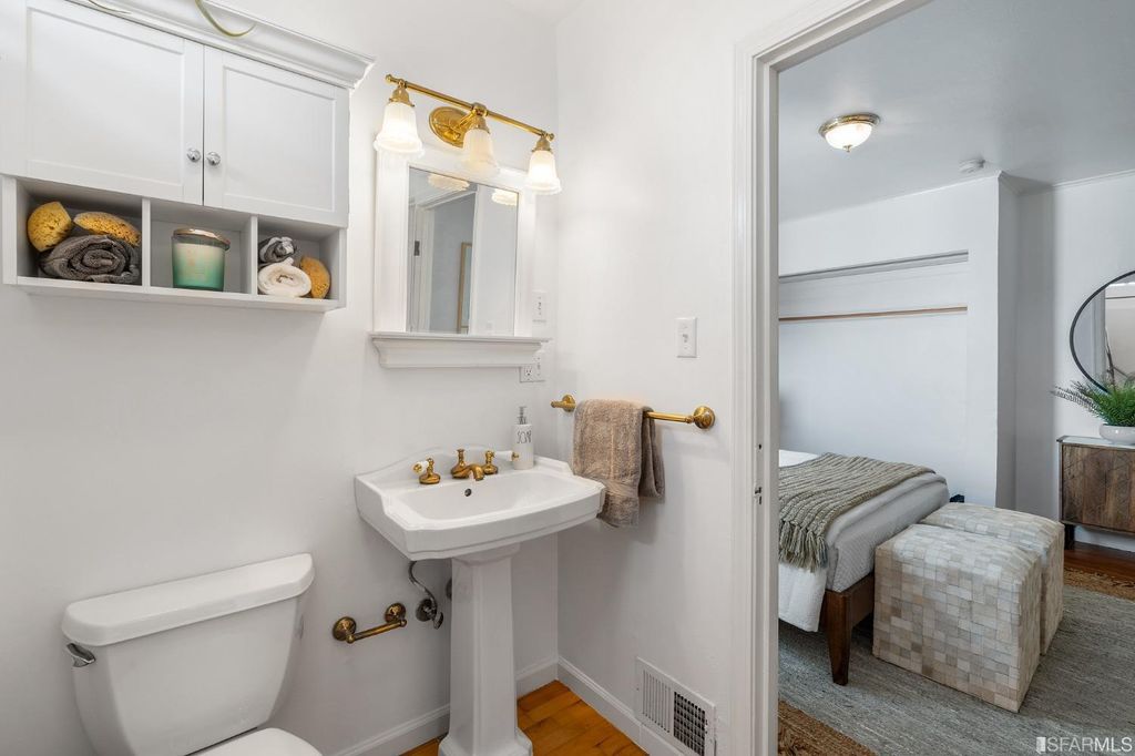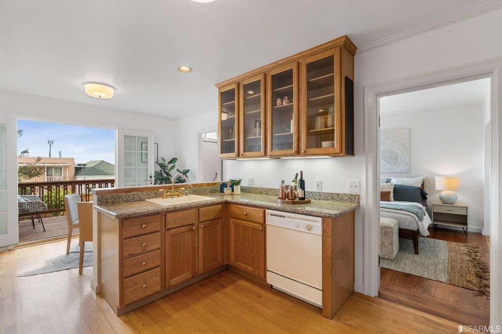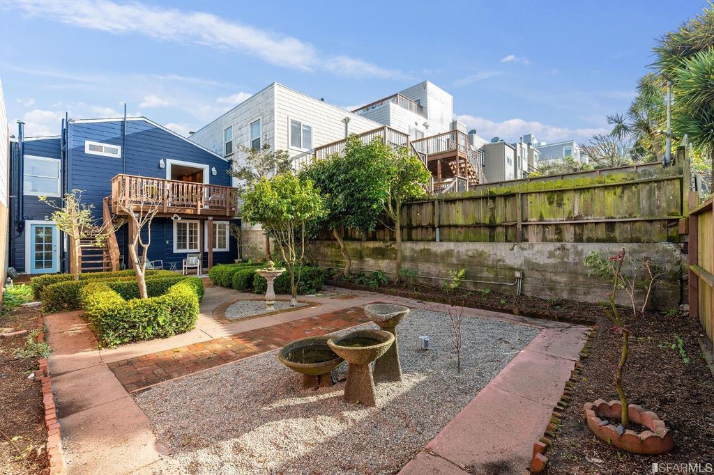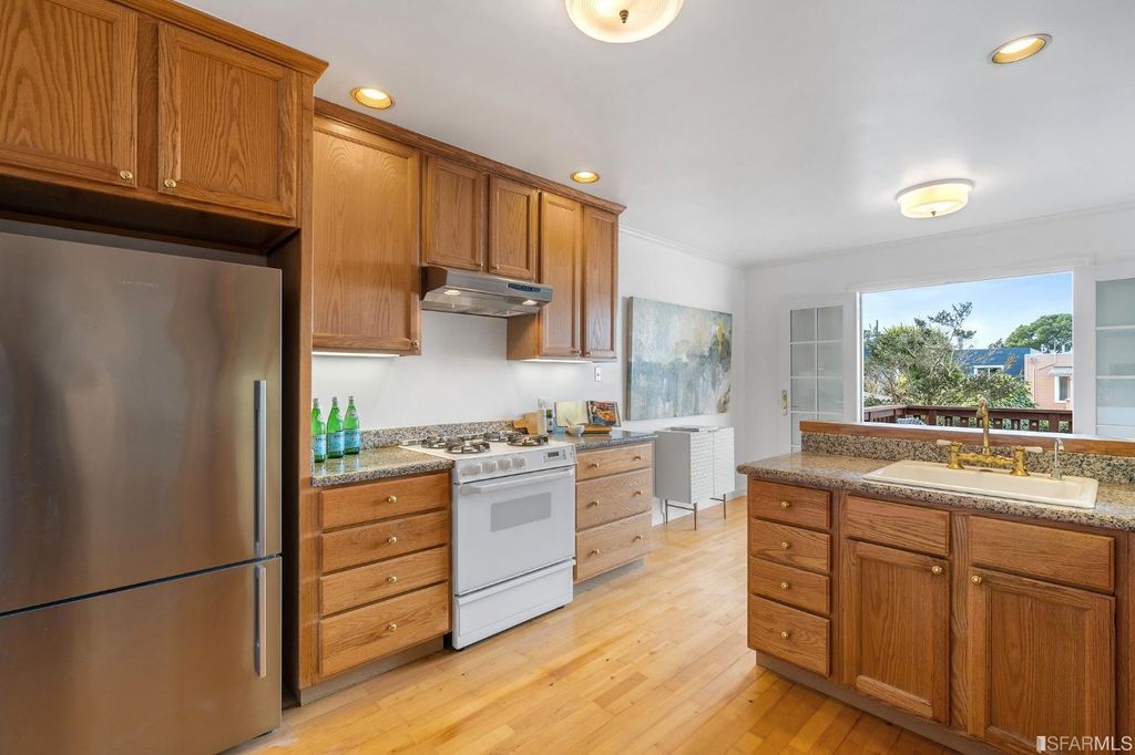 Sweet and well maintained jewelbox in a prime location of Merced Heights! This charming piece of San Francisco is a beautiful little home and would be a special one to own. Gated entry leads into a small mud area which flows into the living room with wood floors, woodburning fireplace and built in cabinet. Left through the hallway is the front, smaller bedroom with large closet. Off the hallway to the right is a well laid out and updated kitchen. Granite counter tops, oak cabinets, under cabinet lighting and stainless steel appliances are just a few of the niceties coming with this home. Off the kitchen is the larger 2nd bedroom with access to the upstairs bathroom. This sweet bath can be accessed from the bedroom or from the kitchen dining area. French doors off the dining area open to a nice redwood deck which leads to the large and well manicured yard. There is a bonus 2nd bath and 3rd room with views of the brick patio and yard. 2/1 up and 1/1 down. Laundry in oversized garage. Large yard! This home has multiple expansion potential options!